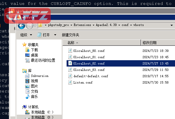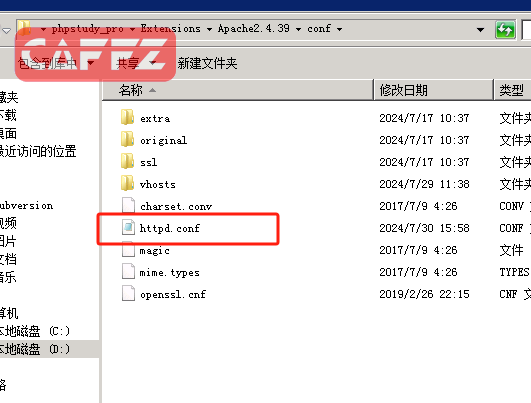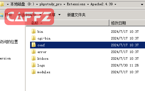 在apache的目录下如图,可以找到vhost,虚拟机的配置文件,在这些文件,我们可以配置多个不同的web服务器 httpd。conf 为全局主配置文件,在这里可以配置apache的全局参数 vhosts文件夹里面的文件可以分别配置不同的虚拟主机运行不同的web编程环境。