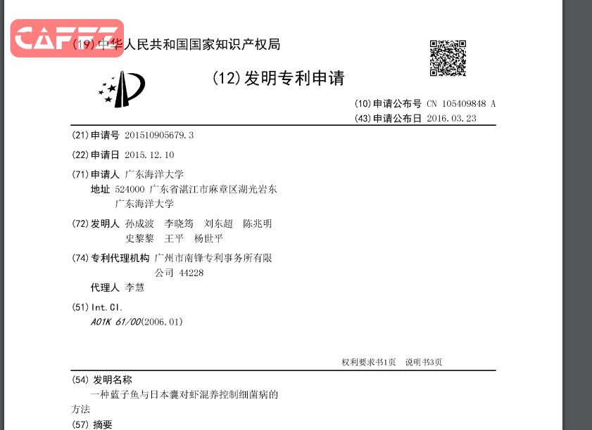 Title: 一种蓝子鱼与日本囊对虾混养控制细菌病的方法
